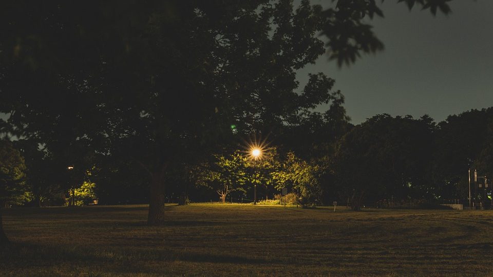 It was a dark and quiet night. Only the soft hooting of an owl, somewhere in the trees, broke the silence from time to time. The air in the park felt heavy with the scent of summer flowers and freshly cut grass. Slowly, underneath one of the big trees, there appeared to be a shimmer, accompanied by a steady electric buzz. A small fissure appeared as if reality itself was cracking in two. It got longer and wider, then a leg, followed by the rest of a body, stepped through it.
