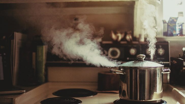 She scrambled for the small, red cylindrical container under the sink, praying it wasn’t expired. Fumbling in the dense haze, she found the little handy extinguisher and aimed it in the direction of her stove.